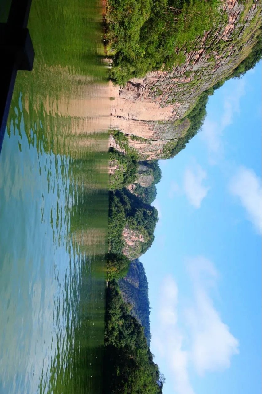 走进大金湖,这里不仅有大自然塑造的千岩万壑、形态万千、气势磅礴、蔚为壮观的丹霞地貌,还有钟灵统秀、烟波浩淼的金湖碧水,山光水色交相辉映,静态与动态的合理协调,造就了湖中有山、山中有湖,山环水、水绕山,把分散于崇山峻岭之中的奇峰异石通过湖水联结在一起,被誉为“天下第一湖山”,成为独具活力和魅力的水上丹霞人间佳境。