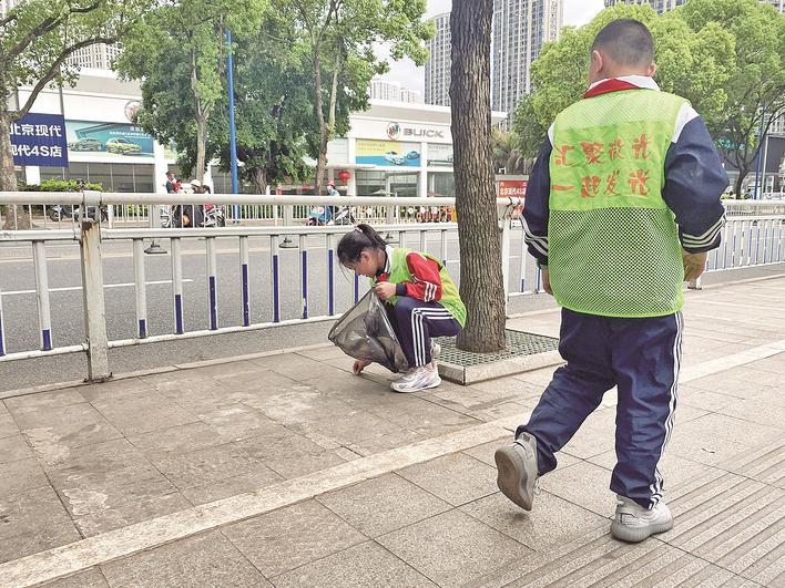一进入三年级,刘语芊便迫不及待地申请加入志愿服务队,把学校当成家,她希望用双手,让学校环境变得整洁干净。“清理校外垃圾,还能减轻环卫叔叔阿姨的工作量,我觉得很有意义。”面对记者,刘语芊说出自己成为志愿者的初衷。