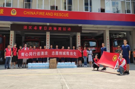 为向在高温下坚守的户外一线工作者们表达敬意、送上爱心,7月26日,共青团三明市委积极组织青年志愿者们到三明广场志愿服务驿站、梅列消防大队、沪明小学项目工地等8个公共场所,为户外一线工作者们送上了2000份清凉解暑用品,给他们在炎热的夏天带去一丝清凉。