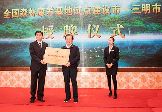11月5日,在第十五届海峡两岸(三明)林业博览会暨投资贸易洽谈会配套活动森林康养论坛会上,三明被授予“全国森林康养基地试点建设市”称号,标志着我市再获一张“国”字号林业生态名片。