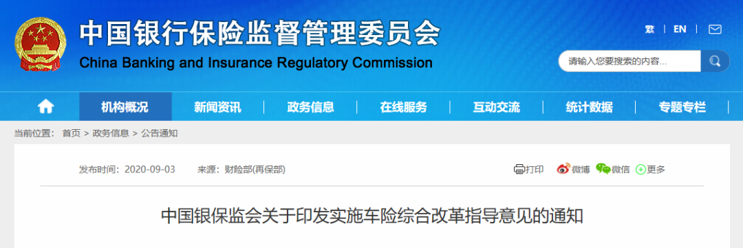 2020年车险综合改革正式实施。