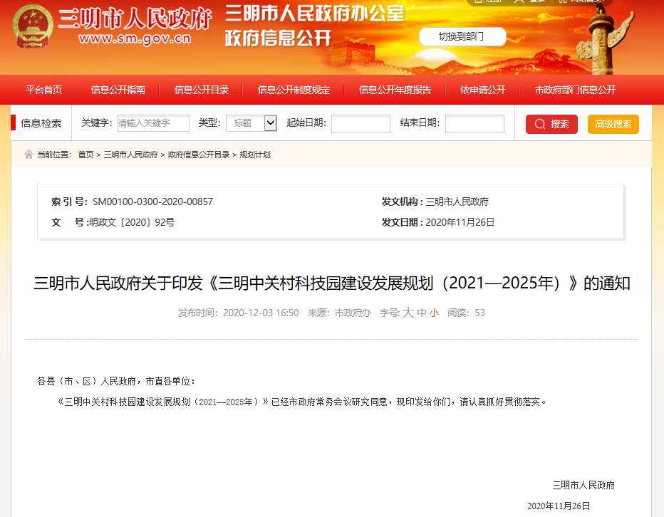 《三明中关村科技园建设发展规划(2021—2025年)》的通知